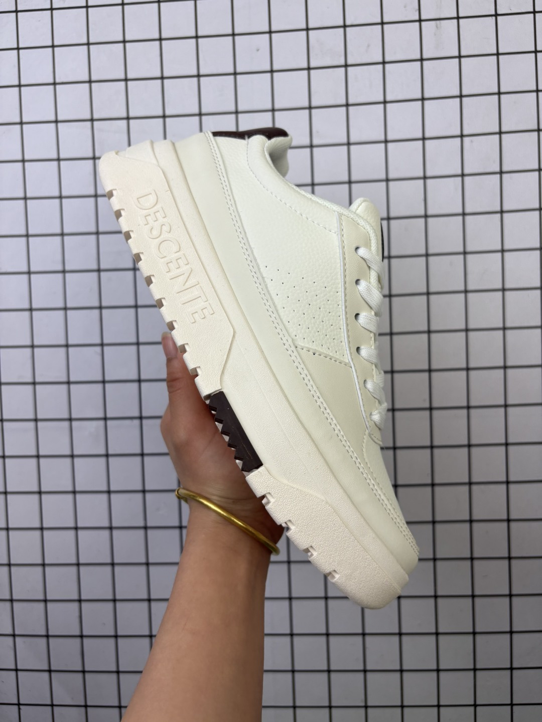 💰150 Descente Cron Racer 迪桑特休闲板鞋,男女同款设计,迪桑特Cron Racer系列是一款融合日系极简设计与功能科技的多场景休闲鞋,核心特点如下:1. 核心功能与技术,全天候防滑大底:适配都市通勤、雨天出行等场景。EVA缓震层+TPU抗扭片:降低骑行、露营等轻运动后的足部疲劳感。易打理材质:牛皮革与麂皮拼接鞋面(好打理皮面)+抗污设计+抗菌鞋垫,适合学生、宝妈等高频使用人群,2. 设计风格与穿搭。日系复古跑鞋风:哑光皮革与翻毛皮材质,突出City Boy风格。薄款夏季设计:无海绵填充的织物贴合结构,适合炎热天气。适用场景:轻户外徒步、都市运动,鞋底纹路设计增强地形适应性,简约又百搭,通勤、运动都能轻松驾驭,衣橱里必须有一双!小白鞋款流线型设计,修脚显瘦,配任何衣服都毫无压力,时尚感爆棚! 货号:D5431DSN77 尺码: 36-45 编码: 103