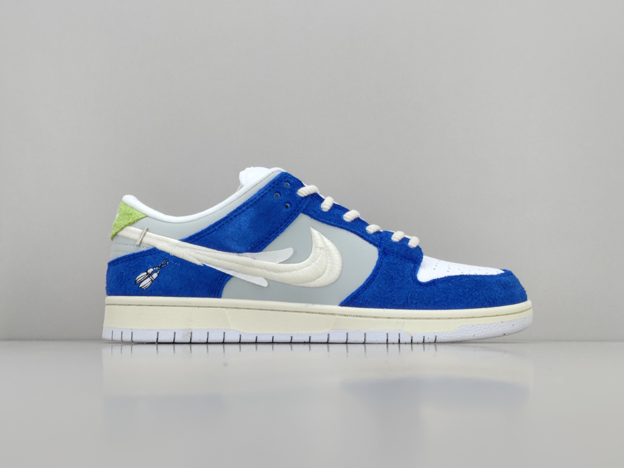 放店💰160 🌲白玉兰DQ5130-400 Fly Streetwear X Nike SB Dunk Low 耐克 SB 低帮 联名蓝灰 蓝灰成为整双Dunk的主色调,辅以帆白中底、绿色尾巴等细节,亮点在于侧身Swoosh的处理和后跟的刺绣图案,都是与店铺所在地上海息息相关的,而在鞋垫除了LOGO,还印有「福来爱」字样,最后以米白中底搭配灰色外底完善设计。 货号:DQ5130-400 尺码:35.5 36.5 37.5 38 38.5 39 40 40.5 41 42 42.5 43 44 44.5 45