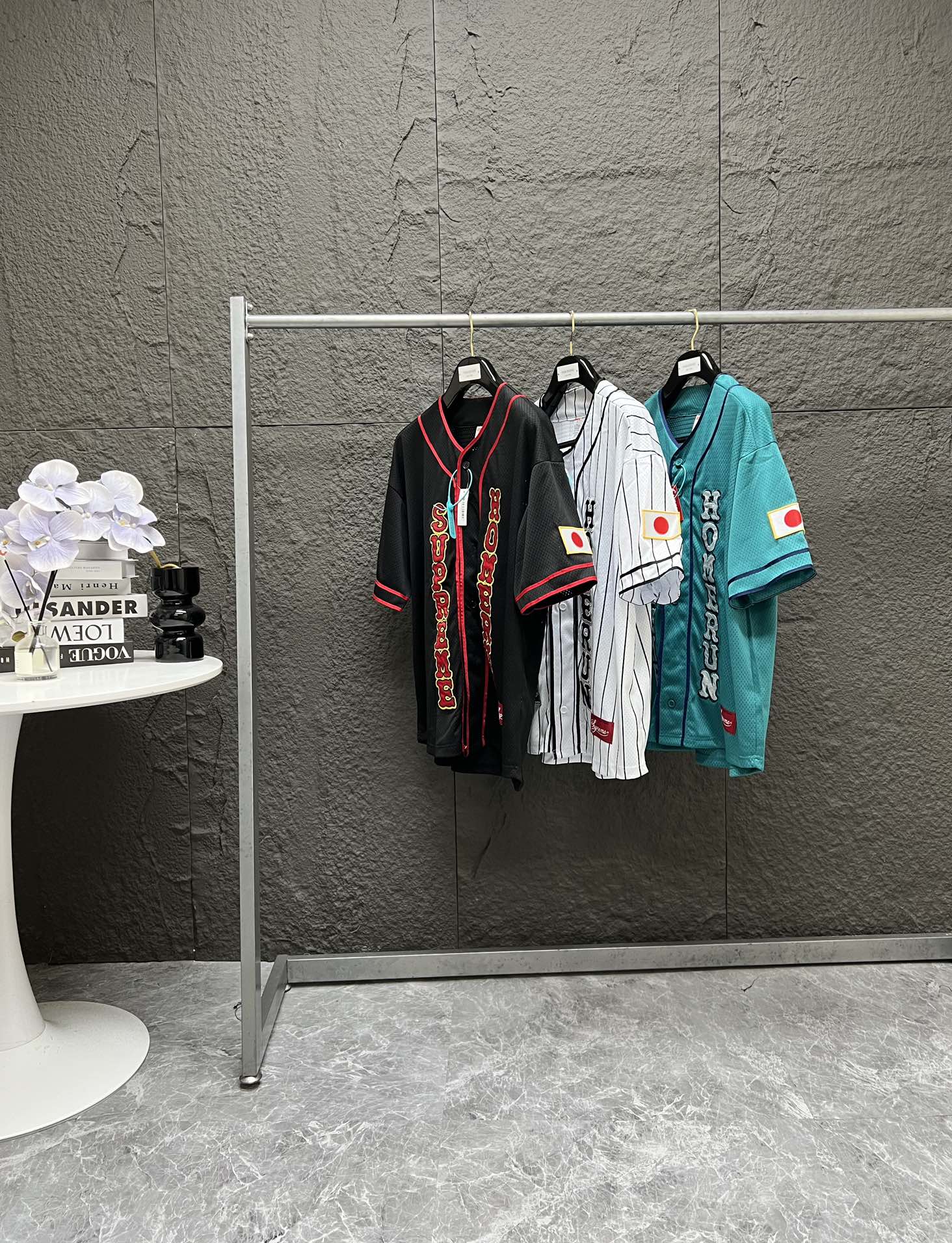 供💰185 🇷🇺Supreme x Homerun 联名款 SS25 WEEK12 Baseball Jersey 标签logo网眼舒适短袖棒球衫🇷🇺男女同款 黑色 白色 绿色 S~xl 🌘日本职棒Homerun的联名系列,黑绿采用撞色设计,白色则是棒球经典的条纹元素。开衫左右分别有supreme和homerun的字体logo,袖标也是日美的图案,而背部则是newyork和tokyo两大时尚之都,可以说是联名细节满满的一件单品。 尺码:175 120穿s合适 胸围 衣长 肩宽 袖长 S: 124 72 54 24.5 M: 128 74 56 25 L: 132 76 57 25.5 XL: 136 78 58 26